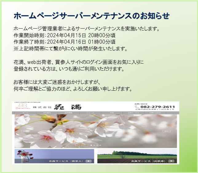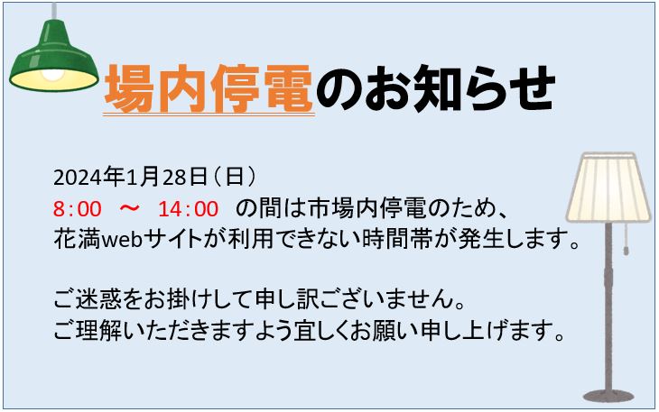 台風の期間中に花満へご来場される買参人様、出荷者様、ご関係者の皆様におかれましては、